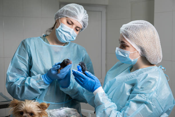 Veterinarians assess the situation and determine whether surgical birth is the safest option. In some cases, a C-section may be recommended even before labor begins, especially for high-risk breeds.